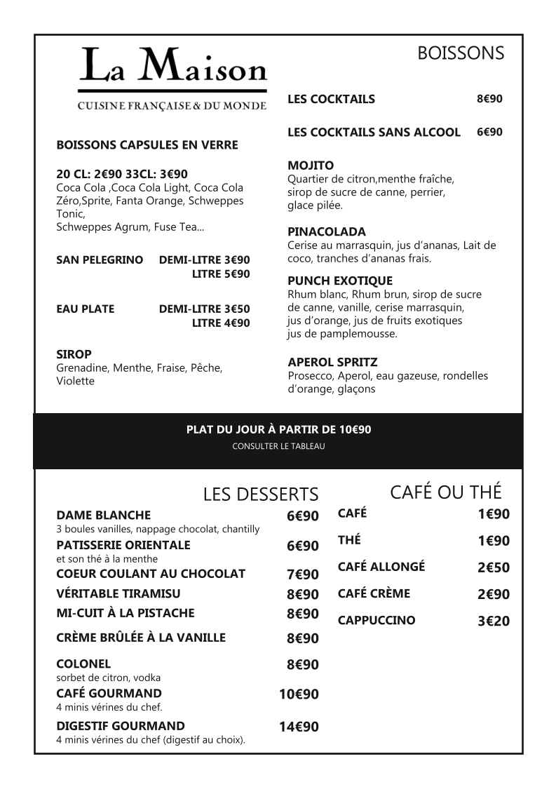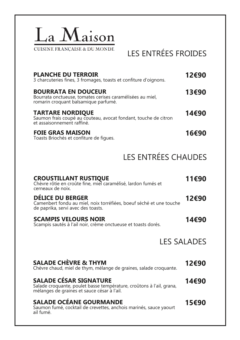 Welcome to LA MAISON - 11 Rue du Chemin de Fer, a culinary gem nestled in Roubaix, France. This vibrant eatery invites you to experience a delightful fusion of flavors that accentuate both local and Mediterranean influences.